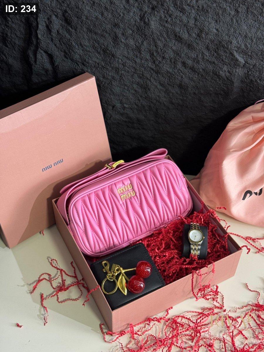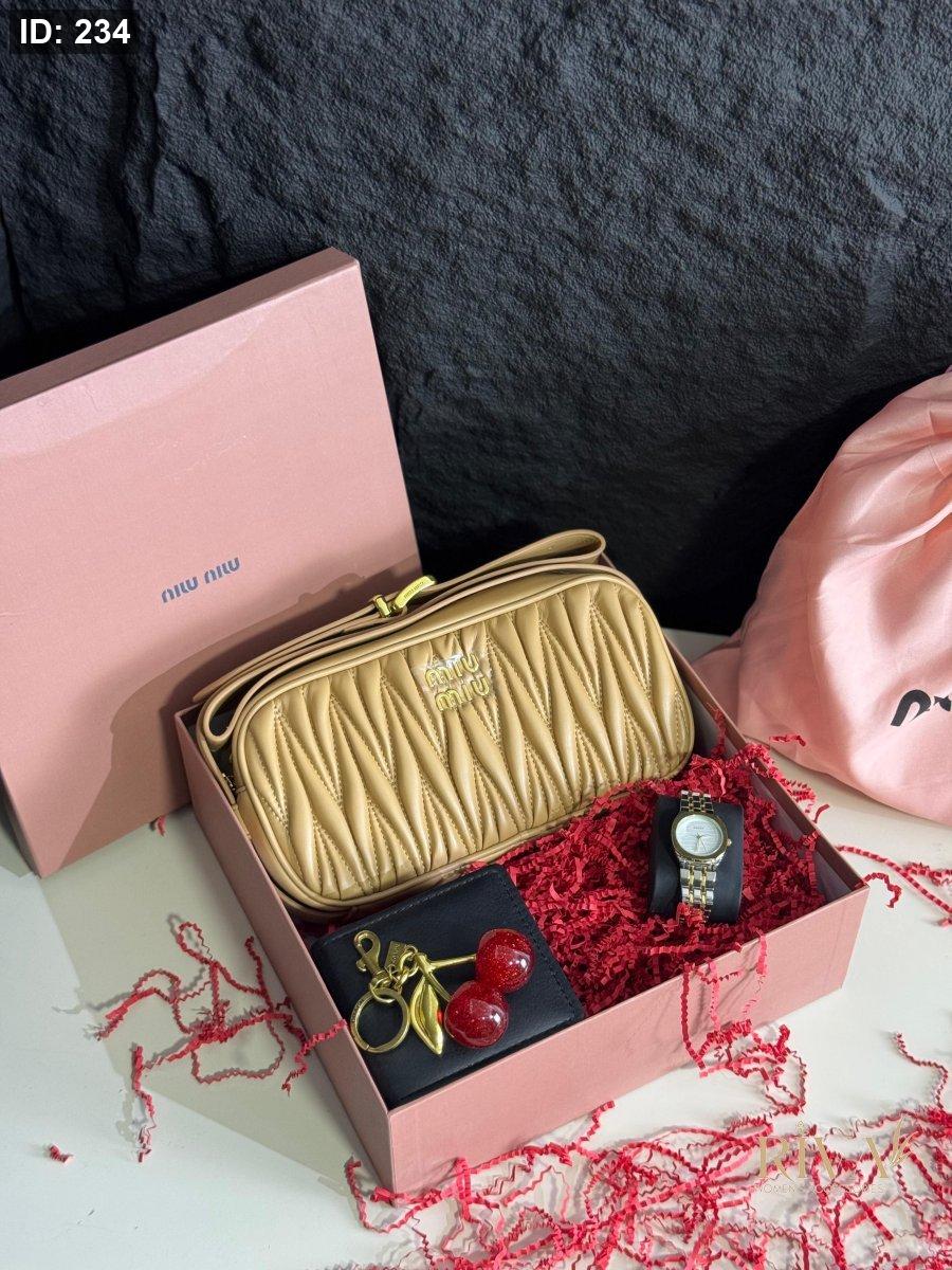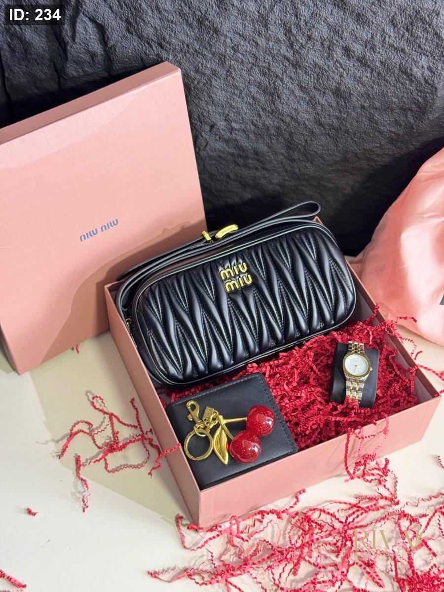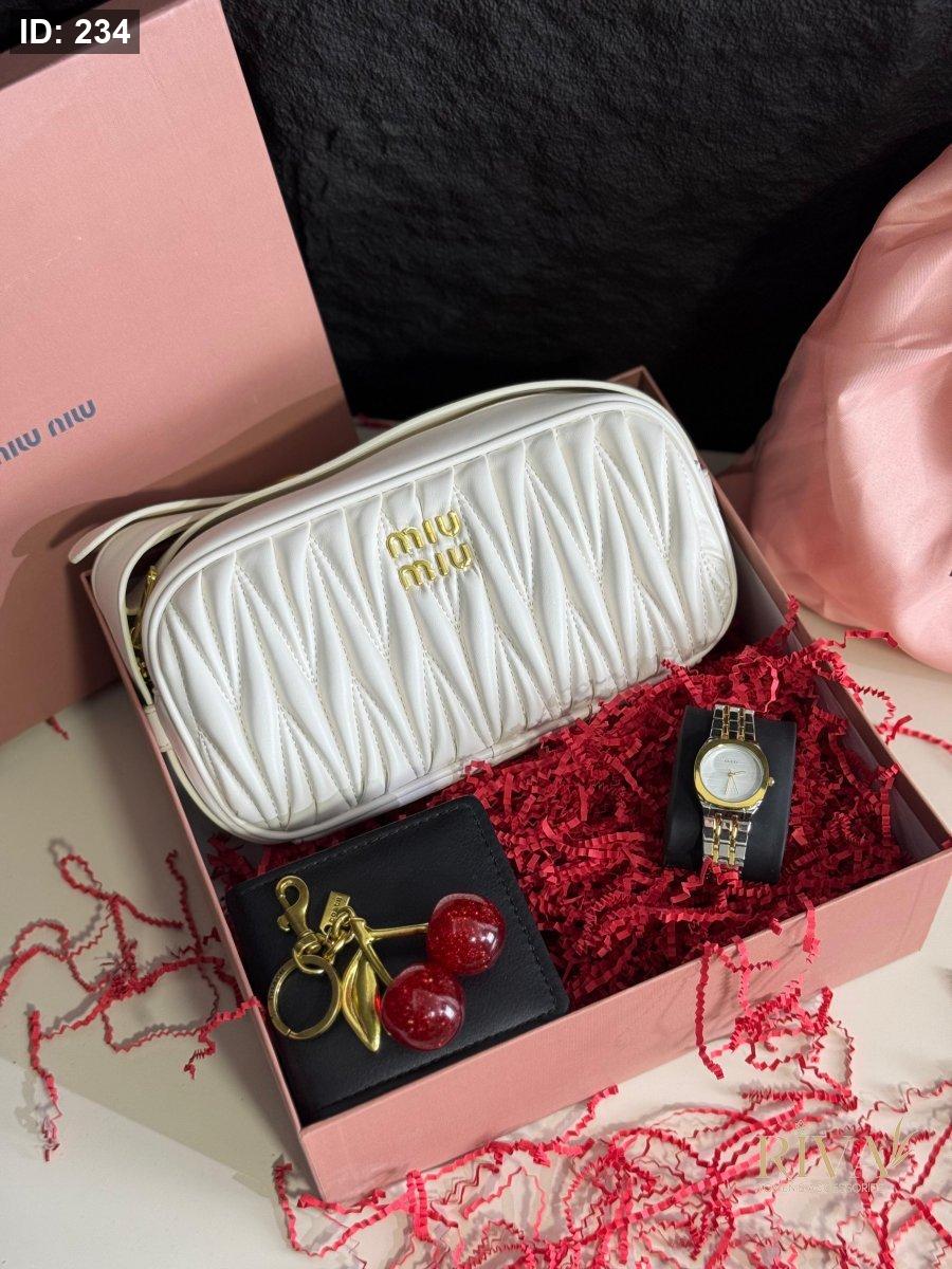 شنطة ميو ميو + ساعه فاخرة + كرزة مختم